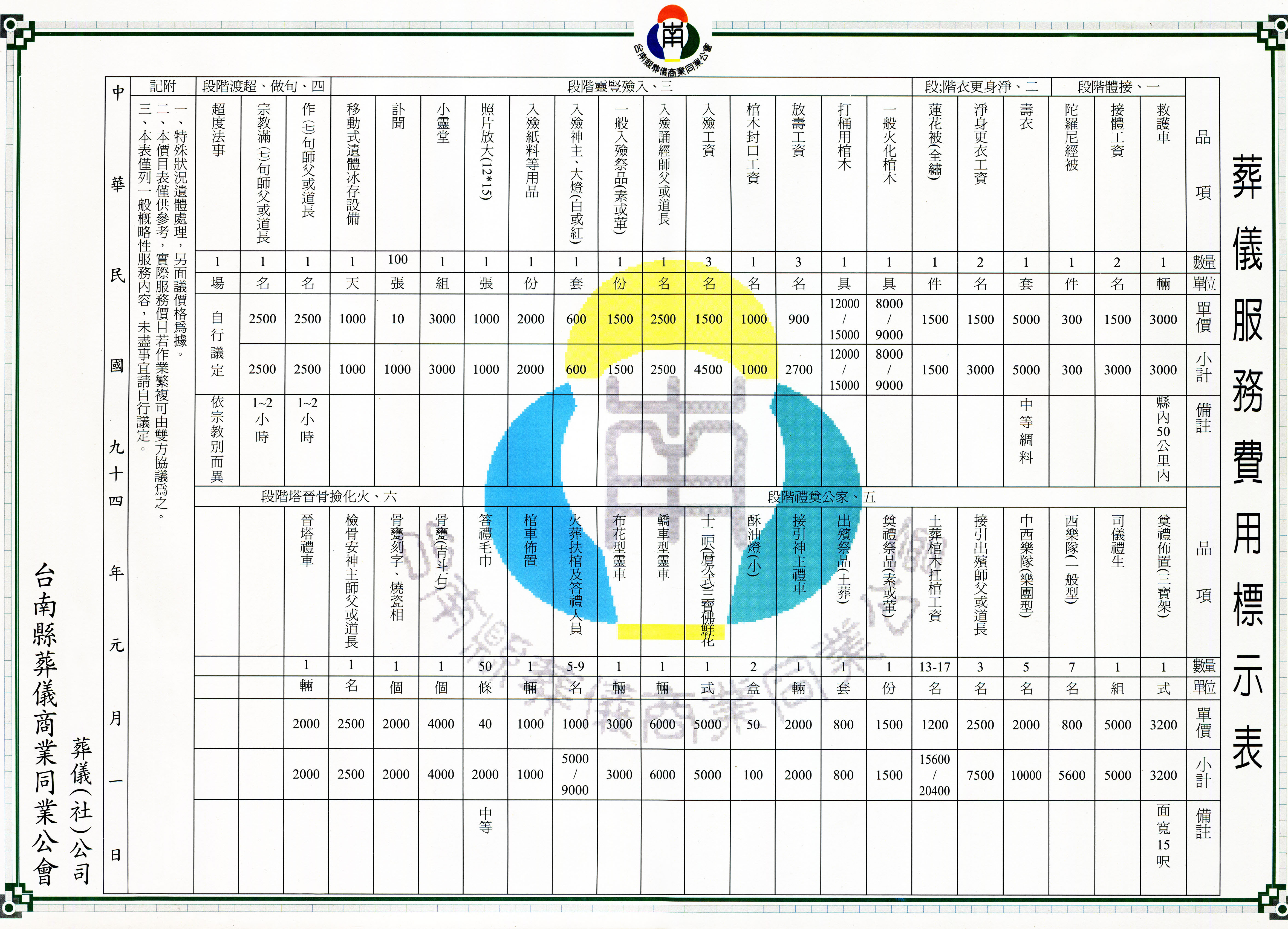 ※ 所有服務案件內容,均與家屬訂定契約,各項價格更以公會所訂定之收費標準表為基準,