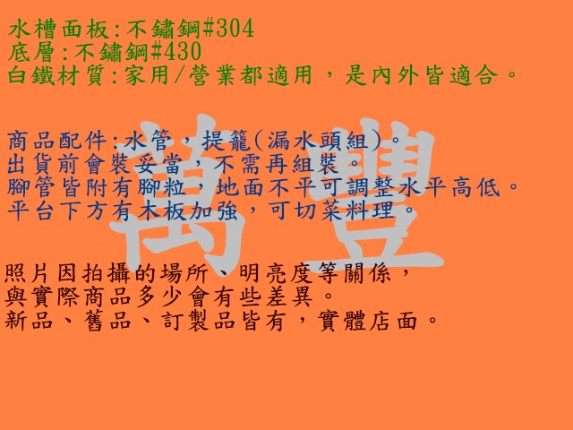 萬豐餐飲設備 全新 100cm水槽+平台/一米水槽/不鏽鋼水槽平台/流理臺